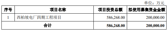 建投能源2026年1月21日披露的向特定对象发行股票募集说明书(修订稿)显示,本次向特定对象发行股票募集资金总额不超过200,000.00万元(含本数),扣除发行费用后的募集资金净额拟投向以下项目:西柏坡电厂四期工程项目。