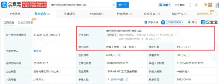 另外,招股书显示金桂华在1995年1月至2001年8月期间担任武进市恒达胶粘剂厂会计,而企查查显示该公司成立于1997年3月7日,金桂华何以入职一家尚未成立的企业?