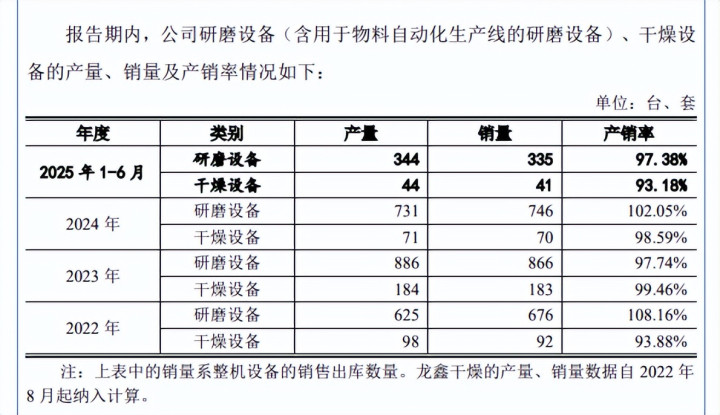 2022年至2025年1-6月(报告期),研磨设备产量分别为625台、886台、731台、344台,2024年同比减少155台,期末产量不足2024年的一半;干燥设备产量分别为98台、184台、71台、44台,2024年同比大幅减少113台,这种情况下大幅扩产是否合理?后续产能消化计划是什么?