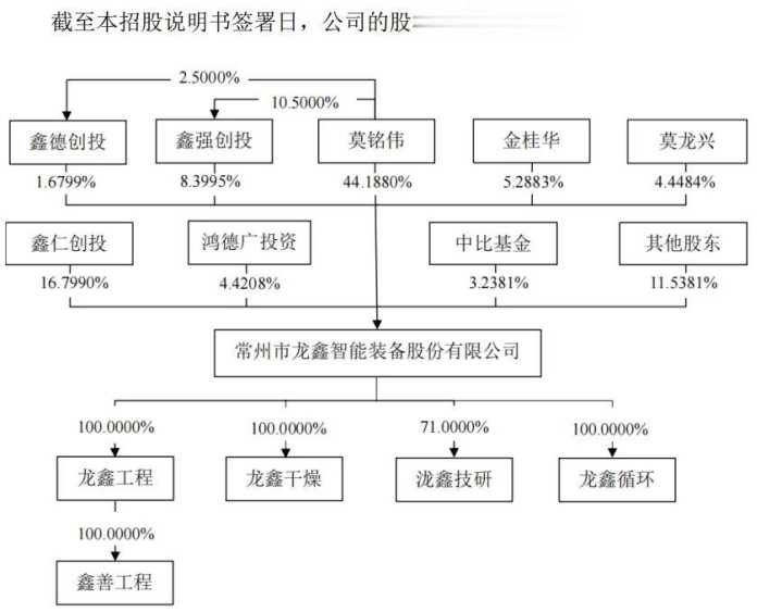 一家三口表决权超62%,金桂华履历存瑕疵。龙鑫智能控股股东是莫铭伟,实际控制人是莫铭伟、莫龙兴、金桂华,三人直接持股比例分别为44.19%、4.45%、5.29%,且莫铭伟通过担任鑫强创投执行事务合伙人间接控制8.4%的表决权,即三人合计表决权为62.32%。